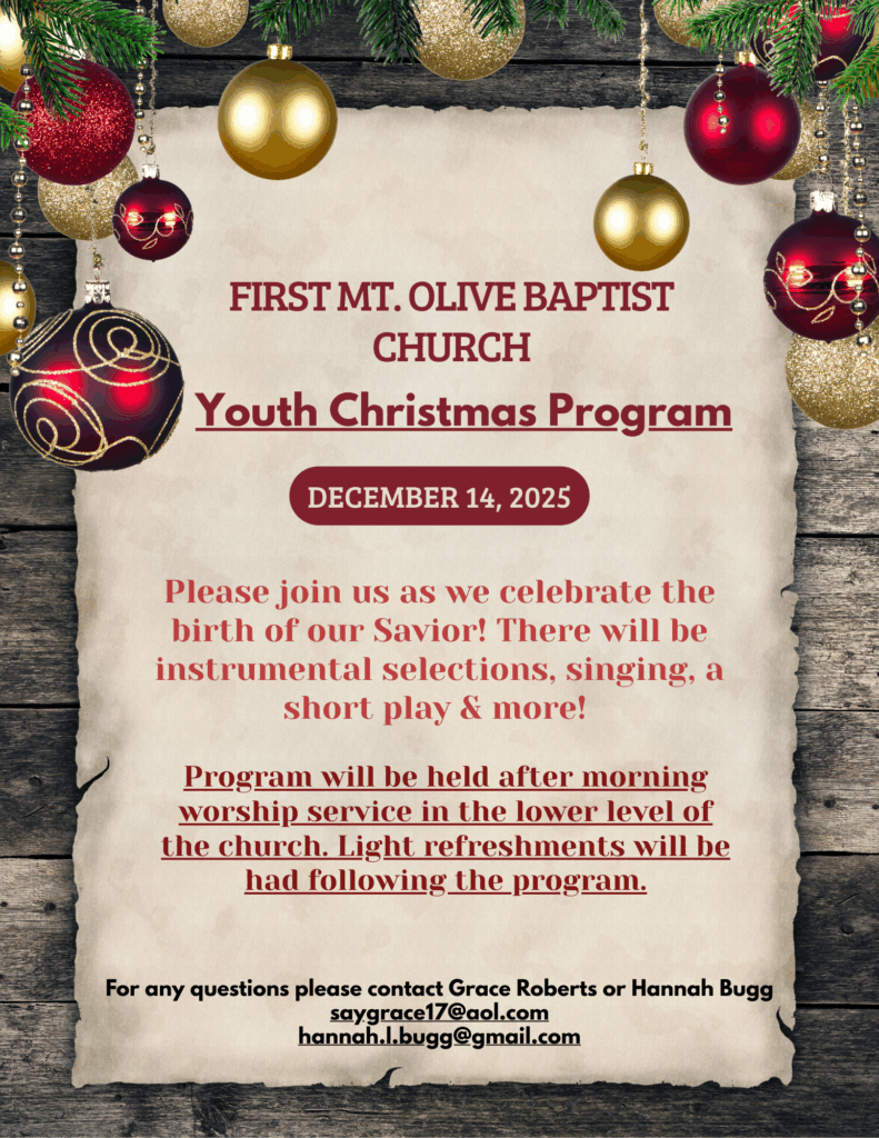YOUTH POWER SURGE(Elementary/Middle/High Schoolers)Every 3rd Wednesday at 6:00 PMThe youth of First Mt. Olive meet monthly for on-line interactions and discussions of subjects of their choosing. These sessions are led by Rev & Sister Jasper and often have guest speakers. A lot of fun and a lot of learning. Over the past months these sessions became an extraordinary success as the young folks really look forward to the on-line get-togethers.This focus for the remainder of this year is understanding The Ten CommandmentsYouth Surge Zoom Meeting Connection :